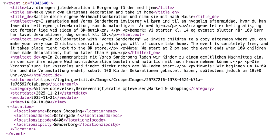 Det er muligt at indgå et datasamarbejde med GoVisit, og dermed trække event data vi et XML feed.